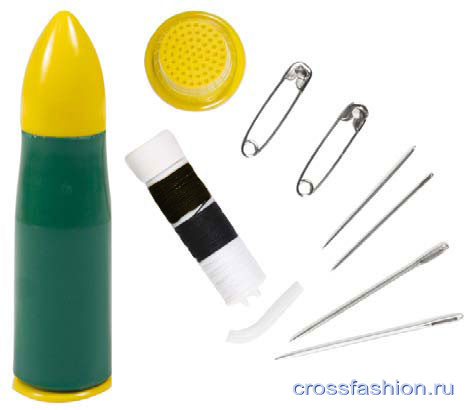 2. Набор доставшийся мне ещё во времена Советского Союза: флакончик с откручивающимся напёрстком, а внутри капсула для иголок, на которую наматывается 5 ниток разных цветов.