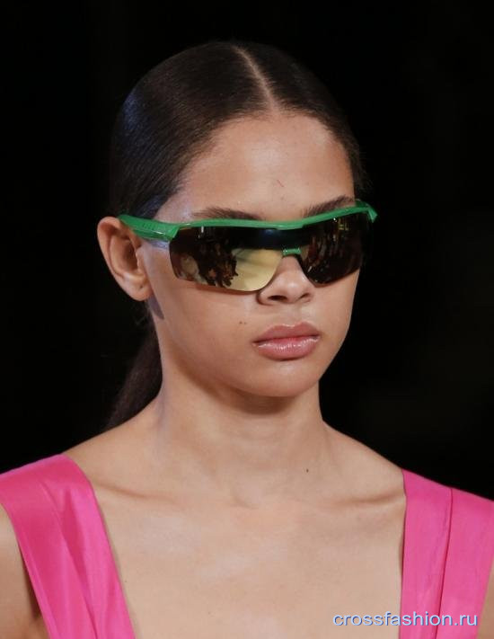 Кроме того, если рассматривать очки не только как средство защиты глаз от солнца, но и как аксессуар, объединяющий костюмный ансамбль в единое целое, можно уйти от концепции «очки необходимо подбирать по форме лица» очень далеко!