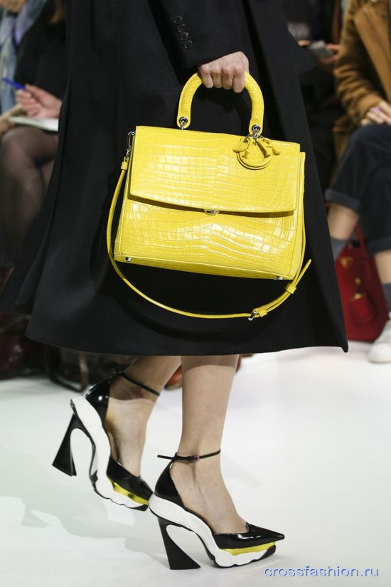 Это была коллекция чистых, ясных и уверенных решений. В ней присутствовала архитектура - простая и понятная. Строгие пальто, основные цвета которых — алый, ярко синий, желтый, а также сумки, с которыми модели прогуливались по подиуму, создавали впечатление офисных, нежели для прогулок по магазинам.