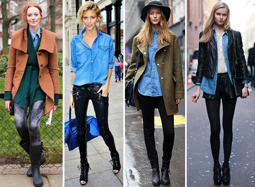 Милен, мне вот нравится с джинсовой рубашкой юбки и брюки под кожу...