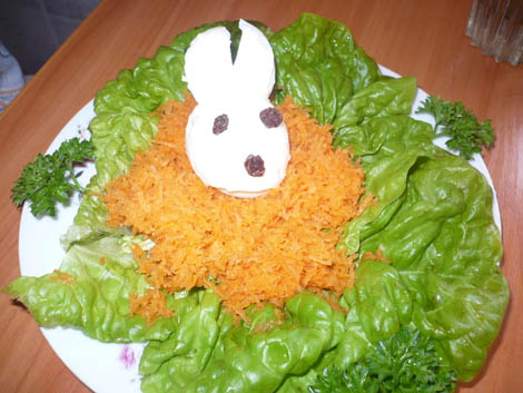 Неа, я сама так не украшаю, люблю подавать красиво, но у меня это просто либо цветочек из овощей, по краю что то, петрушка, укроп..орехи.