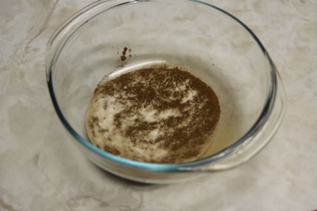 В плошке смешиваем 1/4 стакана сахара и 1 ст.л. корицы.