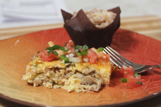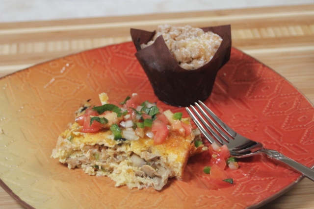 Мой завтрак состоял из омлета с курицей и овощами, а также пирожного с корицей и крошкой (cinnamon crumb cake).