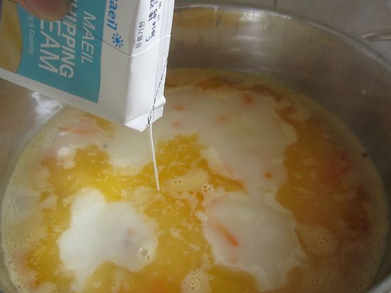 Осталось самое последнее: солим бульон и добавляем в него сливки.