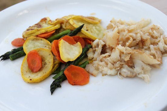 Из овощей весенний цукини, морковь и аспарагус.Рыба - флаундэр.