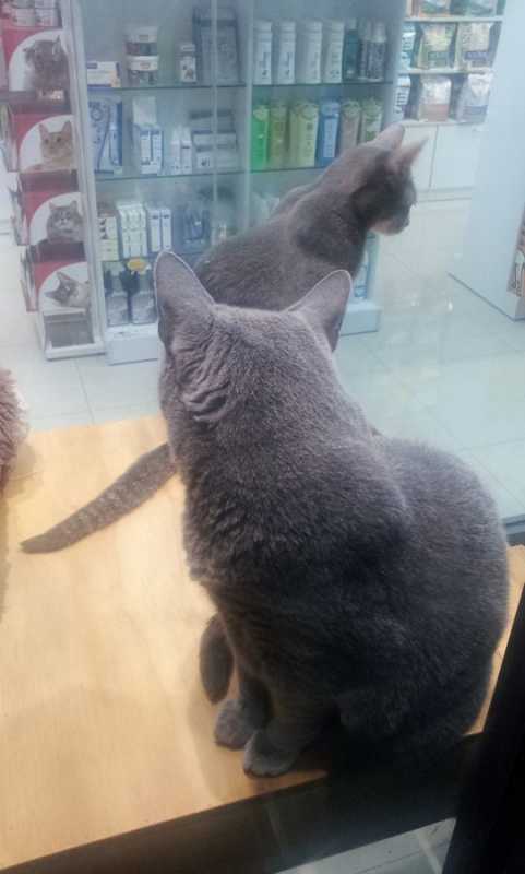 Клинику мы заприметили давно, но думали сначала, что это магазин: помещение заставленное стеллажами с кормом для животных и организованное место для кошек — что еще это могло быть?