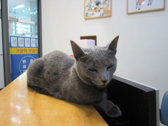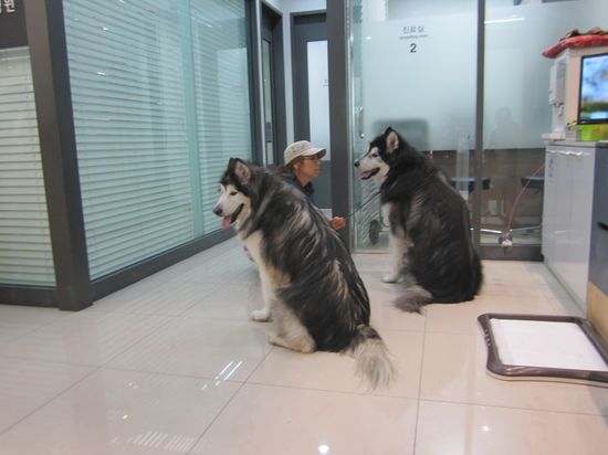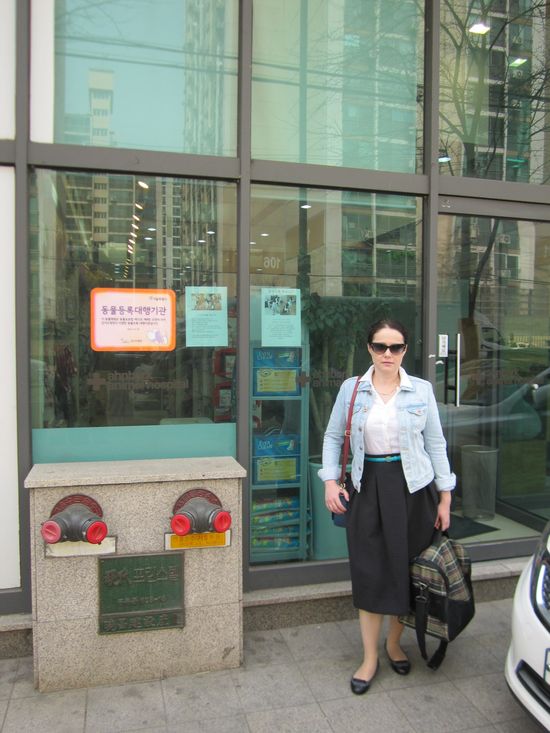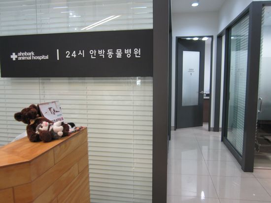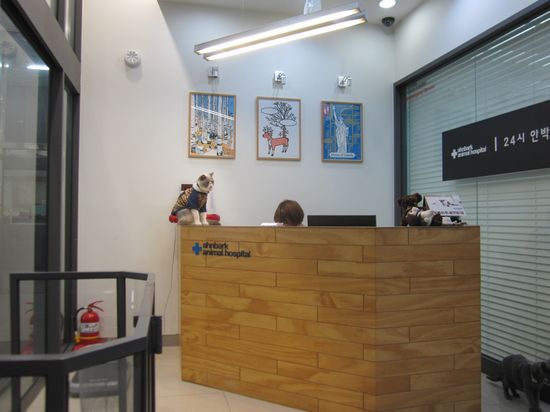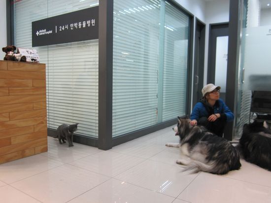 Я не знаю как корейские власти регламентируют ответственность владельца животных, но мне было определенно жалко хозяйку собак: если бы какая-нибудь из кошек, гуляющих по клинике, спровоцировала псов, то хозяйка бы ни за что не удержала этих громил! И все равно собаки были без намордников, а медсестры на ресепшне абсолютно не собирались устранять кошек, шляющихся перед носом собак. Более того, одна из девушек подошла к собаке и потрепала ее по голове!