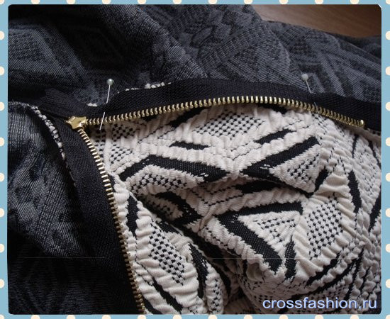 Перед шитьём не забываем продекатировать ткань, а также слегка отпарить замок по текстильным краям.
