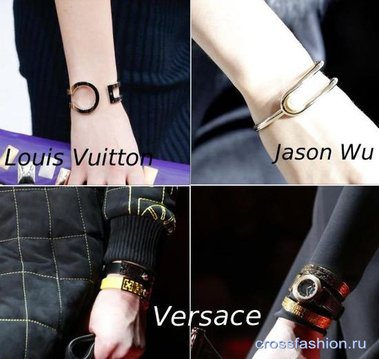 Дизайнеры предлагают отказаться от разномастных браслетов, нанизанных на руку в хаотичном порядке. Если браслет, то один или два украшения, подходящих друг другу и всему наряду по стилю и цветовой гамме.