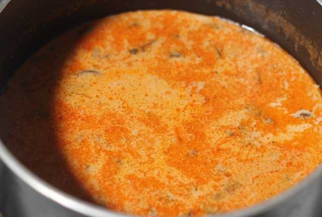 Далее выливаем медленно молоко, постоянно помешивая, доводим до кипения, снимаем с плиты.