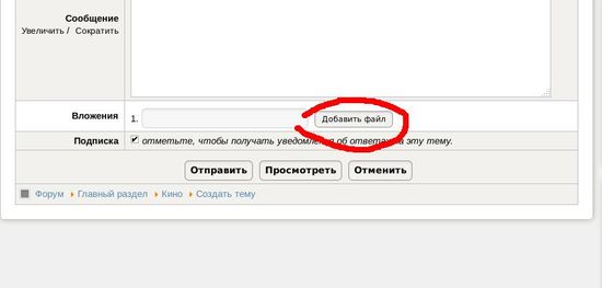 Под окном «Сообщение» найдите окно«Вложения — добавить файл».
