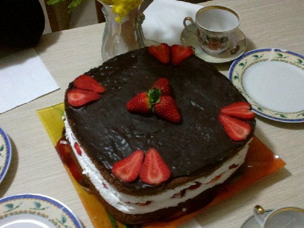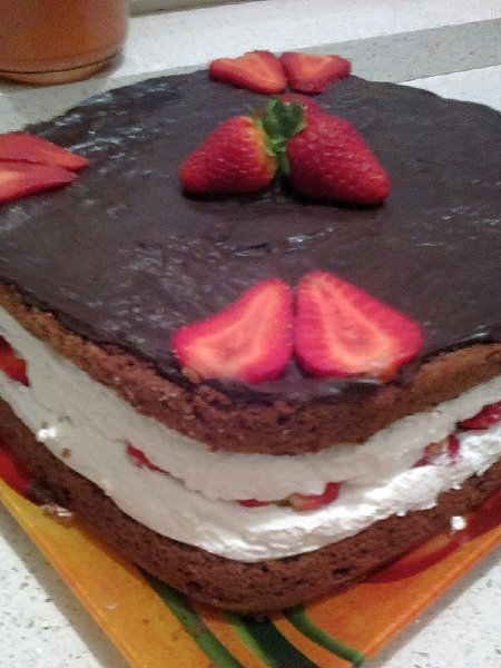 В этом торте нет ничего сложного: шоколадный бисквит, сливочное суфле с клубникой и шоколадная глазурь сверху. Но не для непосвященных – излагаю все по порядку.