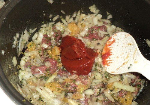 6)Добавляем томатную пасту для цвета