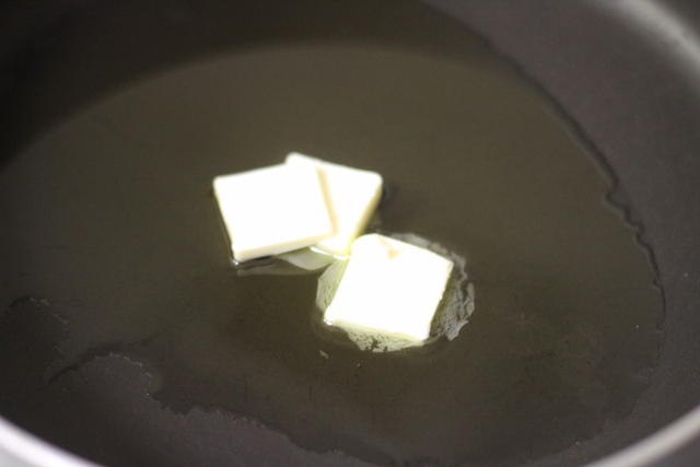 3. В большой сковороде разогреваем для шпината оливковое и сливочное масло.