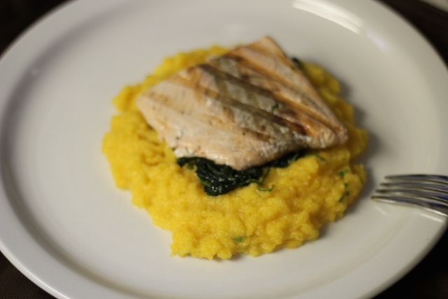 Лосось на гриле с тыквой и шпинатом, фото-рецепт