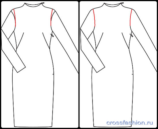 Вытачки на спине оставляем открытыми для более свободного силуэта; замочки-молнии, предусмотренные в журнале, делать не будем (хотя, если у вас неэластичная ткань и платье по фигуре, то лучше сделать застёжку в боковом шве). Уменьшаем по длине.