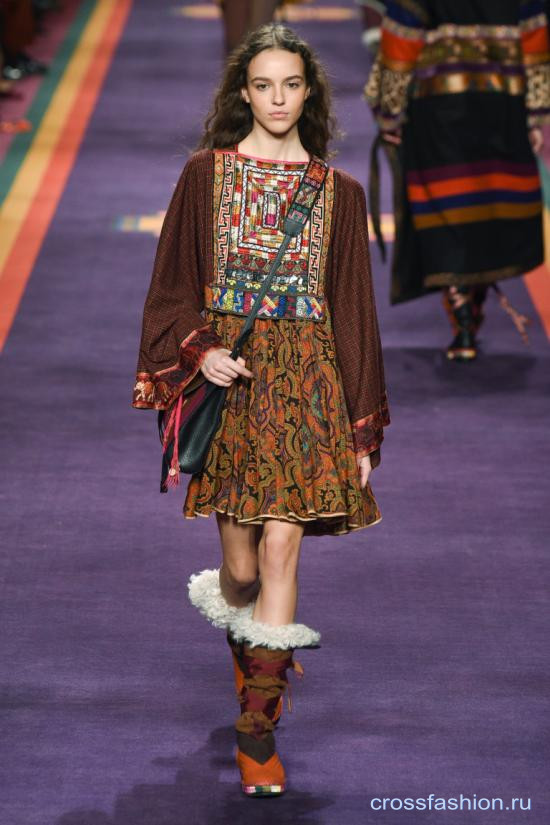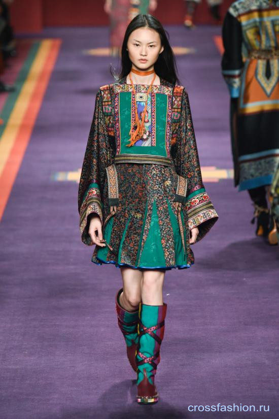 Стеганные куртки и объемные пуховики, имитация лоскутной техники и печворк, мозаичное сочетание этнических принтов и взрыв ярких красок в коллекции Etro осень-зима 2017-2018. Очередная работа Вероники Этро была представлена на Неделе моды в Милане 24 февраля.