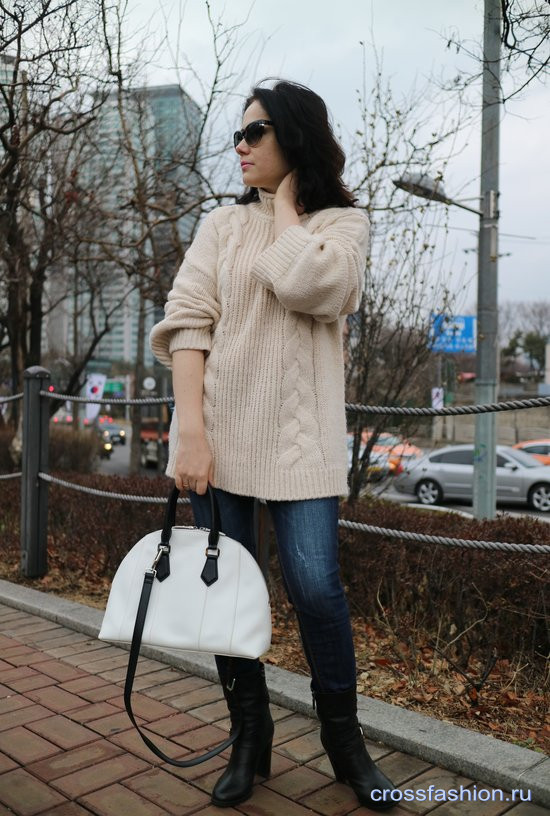 Моему типажу рекомендуются джинсы скинни. Хорошо, однако что делать, если женщина моего типажа обладает выраженными бедрами? С чем комбинировать те самые скинни? С рекомендованными укороченными и приталенными жакетами? Но ведь бедра в данном случае надо бы прикрыть! Сочетание джинсы-скинни+простой джемпер до середины бедра делало из меня типичную тетку, вопрос решился после покупки свитера оверсайз, который уравновесил бедра, подчеркнул не пойми откуда взявшиеся ноги и обозначил талию!