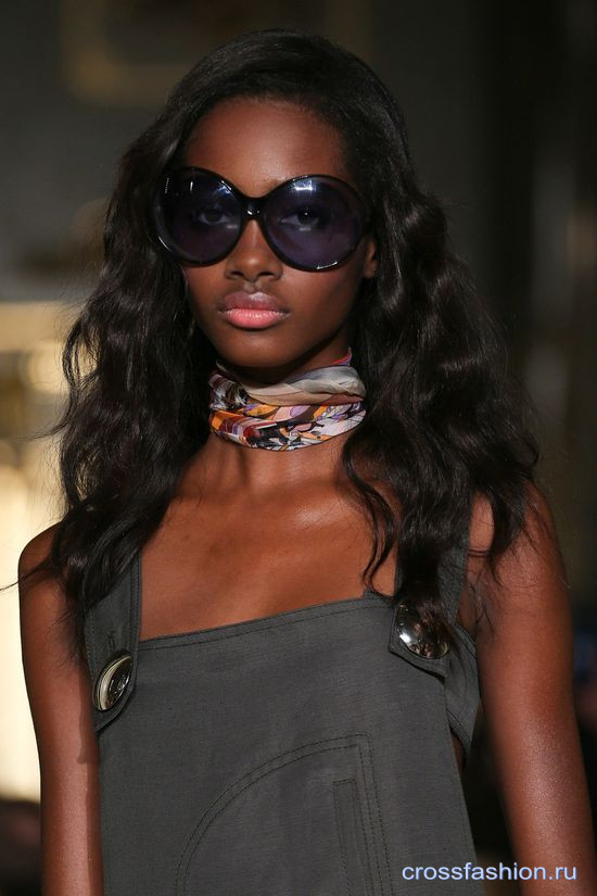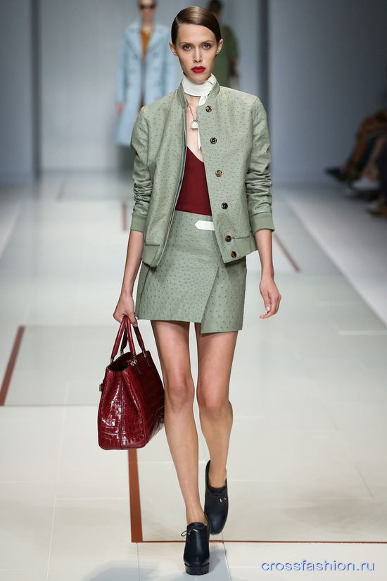 Принято считать, что шарфик способен освежить любой наряд. Безусловно это не так и в большинстве случаев, шарфик, вместо того, чтобы добавить образу изюму, наоборот, упрощает его и делает старомодным. Впрочем, многое зависит от самого платка, его размера, цвета и способа завязывания. Дизайнеры Gucci и Trussardi в коллекциях весна-лето 2015 предлагают один и тот же способ завязывать шарф, сложив его в средней ширины полоску и повязав в виде декоративного ошейника с кокетливо торчащими кончиками.