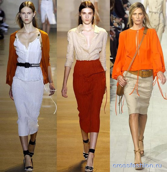 Еще один тренд прошлых сезонов — бахрома, сменила этническую направленность на карнавально-праздничную. Впрочем, некоторые модели юбок-карандашей дополнены лишь тонкими полосками специально растрепанной ткани, что моментально смягчает деловую составляющую строгого карандаша.