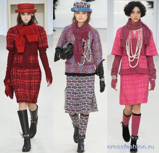 Если Алексис Мабий в прошлогодней зимней коллекции просто «навертел» на шеи моделей тонкие кардиганы, то в коллекции Chanel осень-зима 2016-2017 можно увидеть необычные шарфы, полотно которых выполнено в виде рукавов кофты с манжетами.