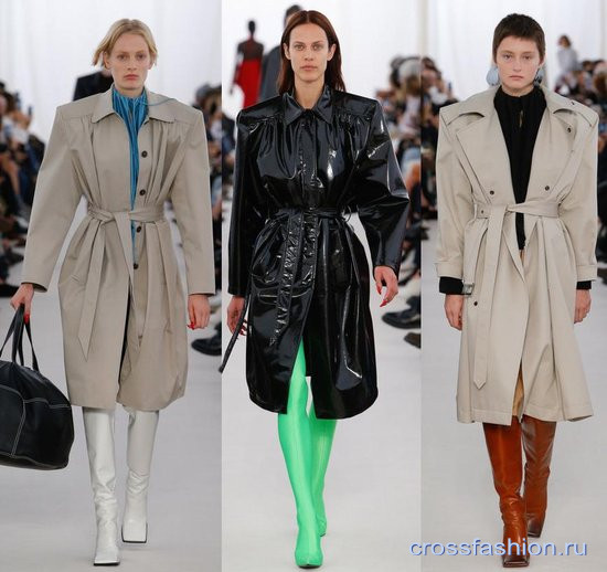 Модели с подчеркнутой талией если и встречаются в коллекциях, то это либо плащи оверсайз с поясом, либо слегка расклешенные к низу, полуприлегающие модели.
