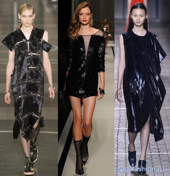 - черные платья с пайетками, платья из металлизированной черной ткани