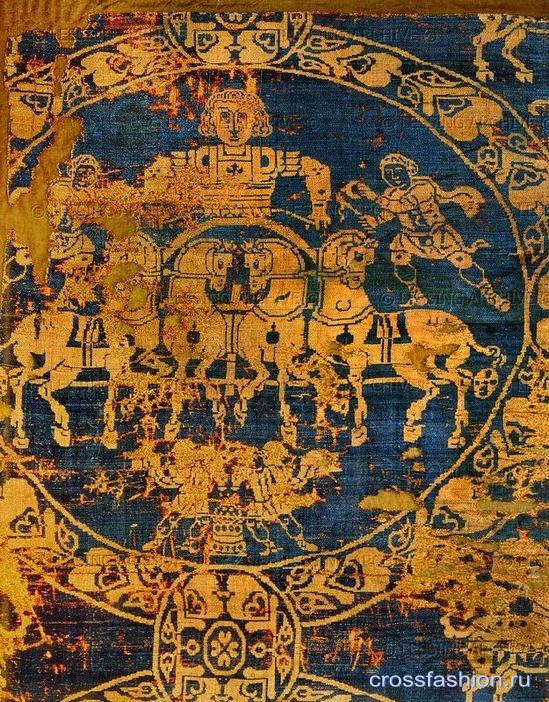 Вероятно из византийского костюма заимствовано и массивное золотое оплечье, надеваемое поверх мантии, и отделка вырезов повседневных платьев героини.