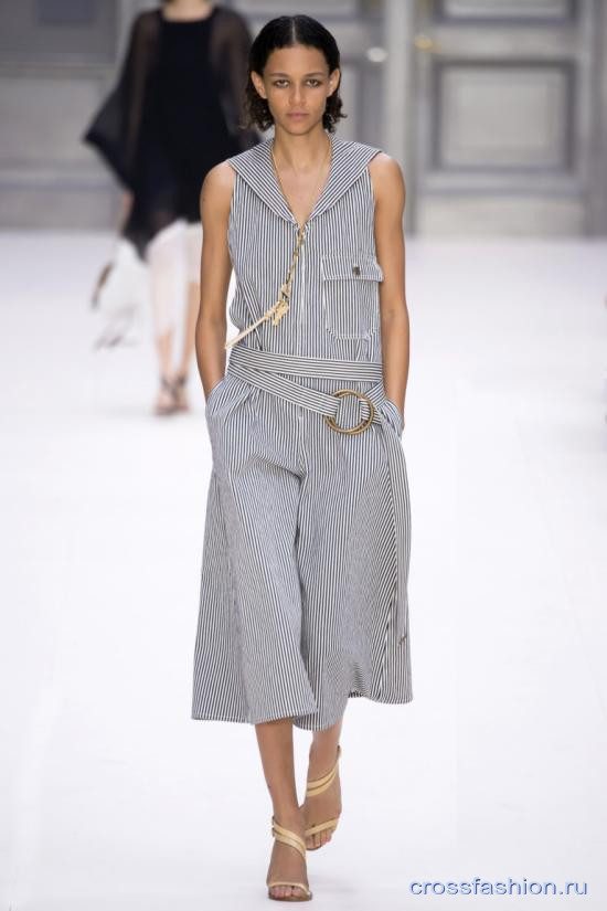 Тончайший хлопок и шелк, элементы спортивного и милитари стилей, а также воланы и банты в коллекции Chloe весна-лето 2017.