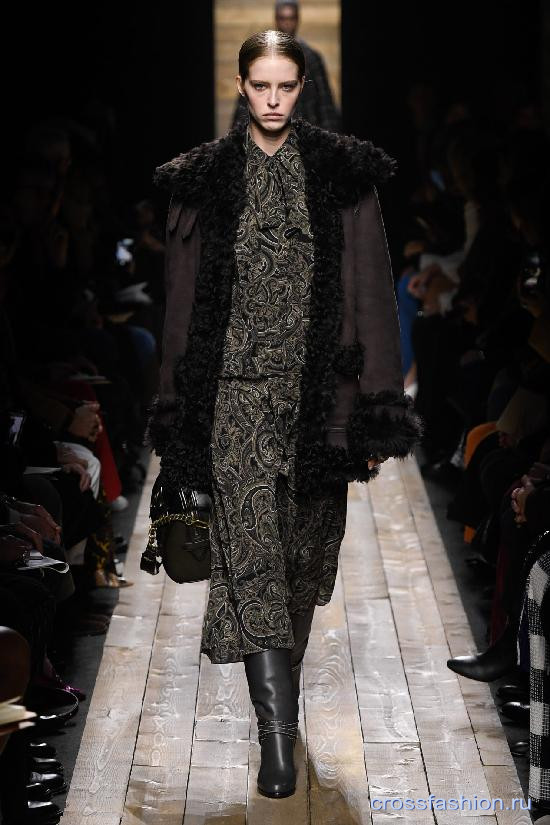 Любители творчества Майкла Корса помнят его коллекцию осень-зима 2010-2011. Десять лет спустя дизайнер снова обращается и к палитре, и к настроению той самой коллекции, разбавляя уже классические сочетания рисунком ткани «пейсли» и английской клеткой.