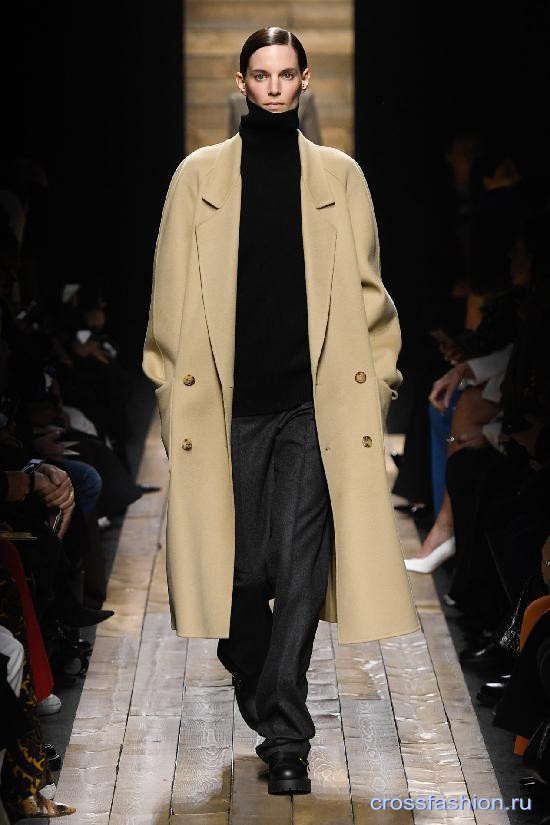 Классическая цветовая гамма, состоящая из оттенков серого и бежевого, элегантные кейпы и возвращение к теме жокейского костюма в коллекции Michael Kors Collection осень-зима 2020-2021.