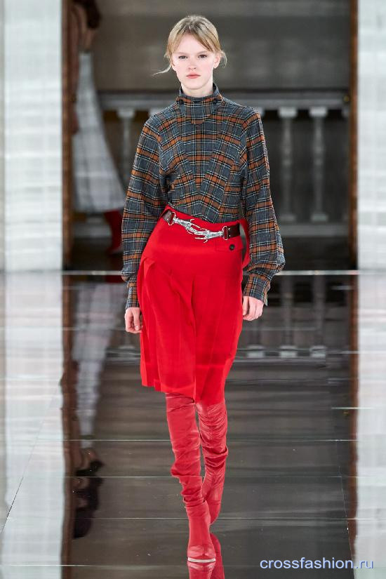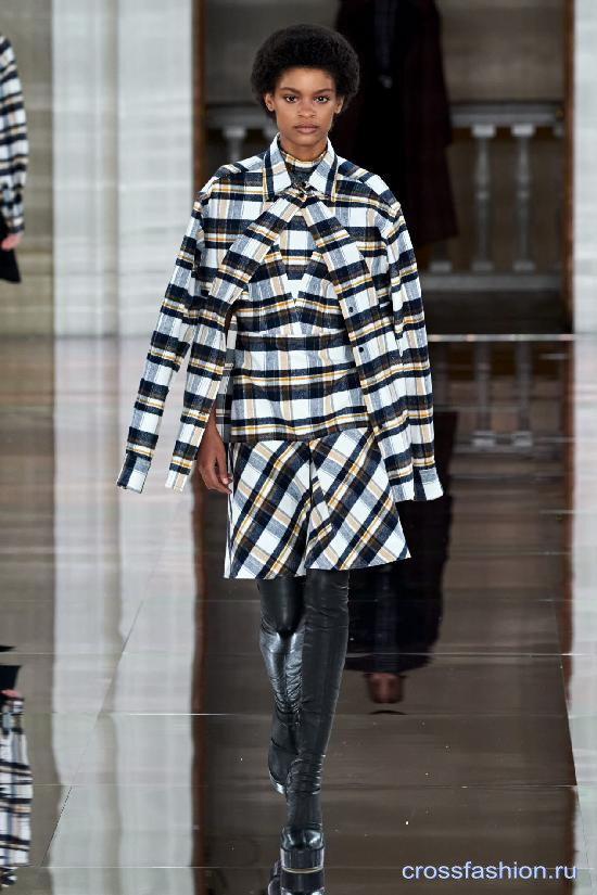 Английская клетка, викторианские воротники и высокие облегающие ногу сапоги в коллекции Vctoria Beckham осень-зима 2020-2021.