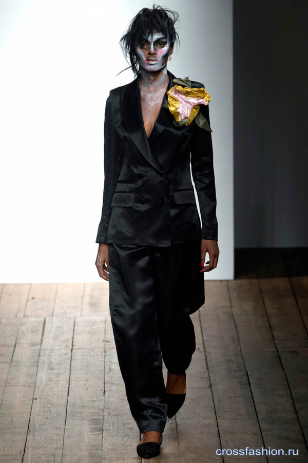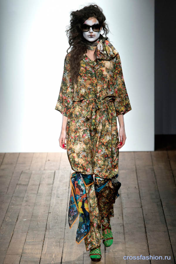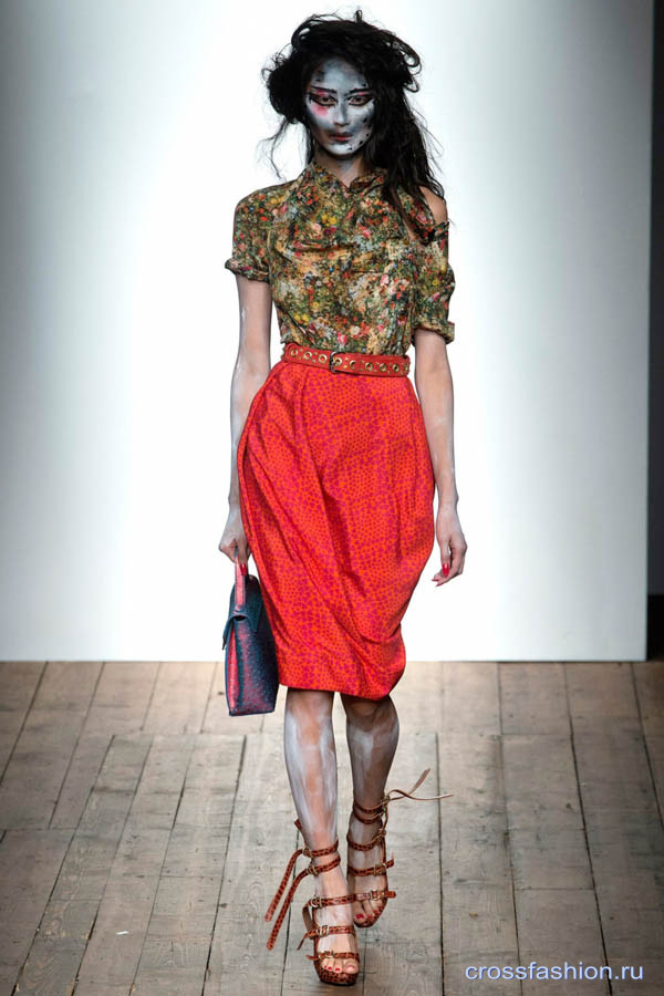 Асимметричные фраки и платья, странные принты и отделка «невпопад» - Вивьен Вествуд остается верна себе, своему стилю и английскому чувству юмора, который, наверное, и есть главное в ее коллекциях. Без юмора и иронии одежда была бы просто вещами, а не одеждой от Вивьен Вествуд.