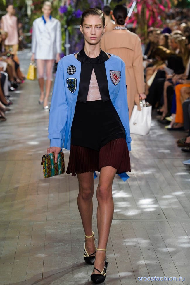 Впрочем, и цветочная тема тоже имеет место быть, в качестве принтов на юбках и платьях, но и там легкость и безмятежность ярких бутонов перечеркивают резкие полосы с надписями.