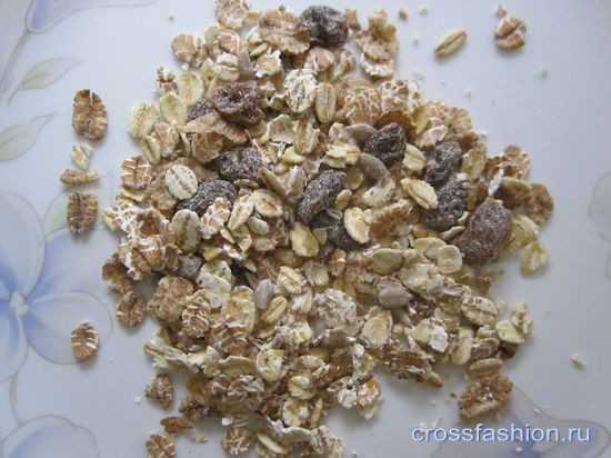 Злаковые, запаренные кипятком с орехами и ягодами (Нашла таки в корейском магазине приличные хлопья! Правда они с изюмом, но изюм я безжалостно выбрасываю).