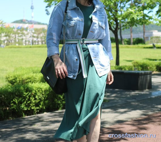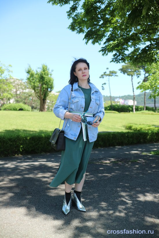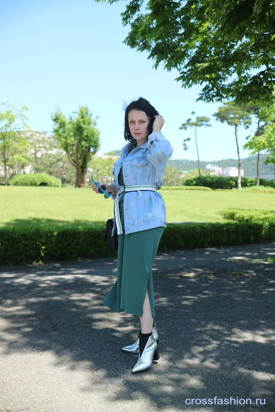 И мой трикотажно-денимный лук. К слову, платье из качественного трикотажа подходящего цвета и кроя — палочка-выручалочка в гардеробе жарким летом. Особенно для представительниц спортивных и натуральных векторов. Имейте в виду, что для разных векторов это будут разные трикотажные платья.