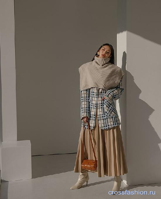 Южнокорейский бренд одежды Dint вывел воротник-манишку на новый уровень, сделав ее главным аксессуаром многих образов зимней коллекции.