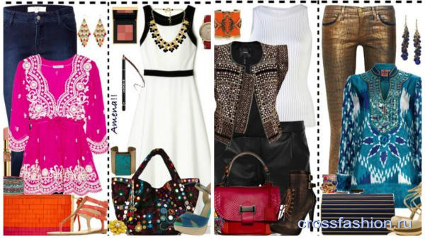 Для того чтобы фьюжн-образ не превратился в трэшовый микс всего, «что под руку попало», стоит сразу же нарисовать в своем воображении целостную картинку желаемого результата, а недостающие для колоритности детали подбирать уже в процессе воплощения своих фантазий. Фьюжн – это один базовый стиль плюс ткани, принты, декор, силуэты или украшения, характерные для других направлений.