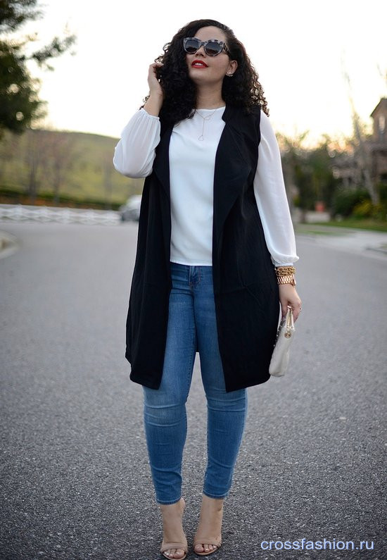Кроме этого, автор блога «Girl with curves» продемонстрировала джинсовый total look и образ с шарфом-пледом, оказавшийся, на мой взгляд, крайне удачным.