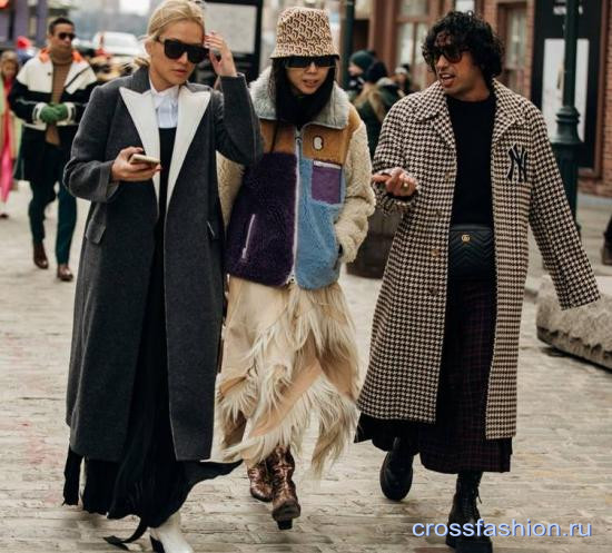 - соотношение цветов в костюмном ансамбле. Пантон может говорить все что угодно, но даже беглый взгляд на гостей показов нью-йоркской Недели моды симафорит: актуальны монохромные и монопринтные сочетания