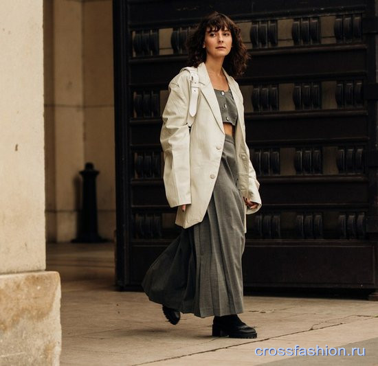 Единственный нюанс: если у вас короткие ноги, желательно дополнять образ обувью на каблуке или платформе флэтформ, чтобы сбалансировать пропорцию длина торса/длина ног.