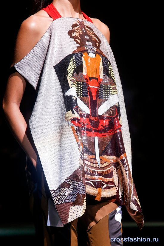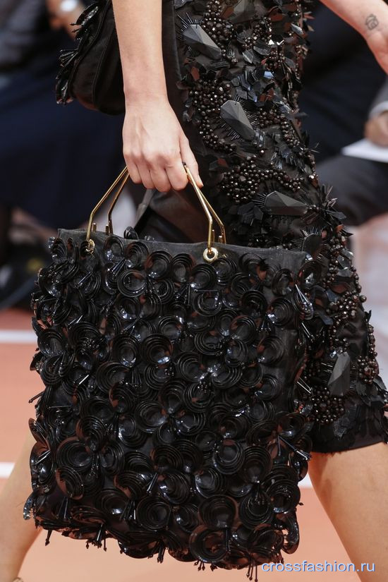 В коллекции Versace куртка и юбка из кожи голубого цвета богато расшиты цветами. Дизайнеры Givenchy создали целые картины-полотна из пайеток, а Миучча Прада и Роберто Кавалли, похоже, еще не до конца переболели вирусом «Великий Гэтсби»! Итальянцы снова предложили платья в стиле 20-х годов, щедро расшитые бисером, кристаллами и пайетками.